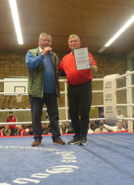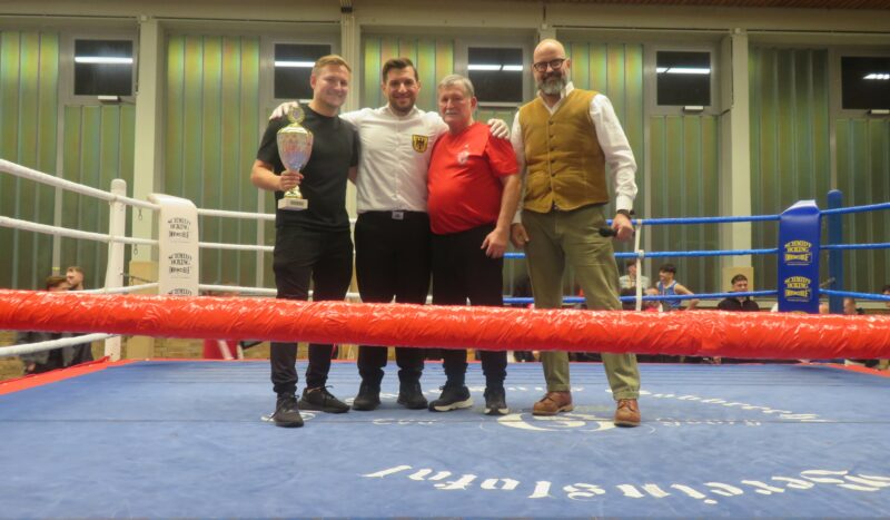 Mit einer starken Teamleistung wurde ÖSG Viktoria 08 Dortmund der erfolgreichste Verein des Turniers. Trainer Erich Weber und Co-Trainer Felix Falk erhielten dafür aus den Händen von Ringsprecher Dirk van der Pluym den Siegerpokal. Ein besonderer Moment war die Ehrung von Trainer Erich Weber: Der Ehrenpräsident der Fachschaft Dortmund, Dieter Schumann, überreichte ihm eine Schmuckurkunde für 35 Jahre erfolgreiche Arbeit im Dortmunder Boxsport – eine beeindruckende Auszeichnung für jahrzehntelanges Engagement.