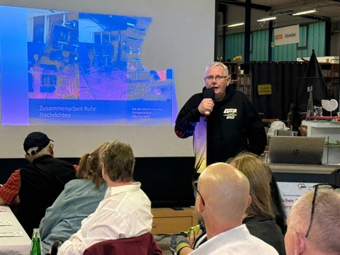 Besonders viel Beifall erhielt die Präsentation von Uwe Kisker, Mitarbeiter der Event Live TV Produktion Dortmund GmbH. Er berichtete lebendig über die Geschichte von Sport-Live e.V., die Gründung und Entwicklung von Event Live TV Produktion Dortmund sowie die heutigen Aktivitäten des Unternehmens. Mit zahlreichen Fotos und Beispielen – von der Wahl-Arena über die Schlager-Party bis hin zum Oktoberfest – veranschaulichte er eindrucksvoll die Bandbreite der bisherigen Produktionen. Die Gäste hörten interessiert zu und nutzten die Gelegenheit, Fragen zu stellen.