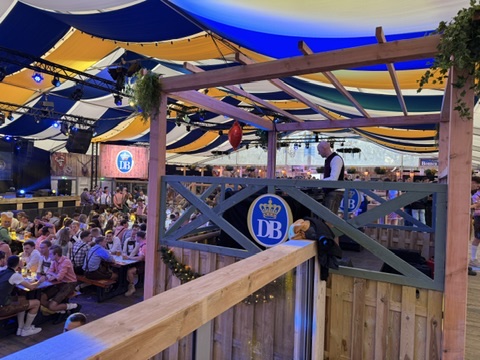 Das Oktoberfest in Soerendonk wird an drei Tagen gefeiert – Samstag, Sonntag und Montag – und bietet Platz für rund 2.500 Besucher pro Tag. Beim Betreten des großen Festzelts waren wir sofort beeindruckt: Ein modernes, zweistöckig aufgebautes Zelt mit festen Theken, Sitzplätzen im unteren Bereich und Stehplätzen oben. Die gesamte Konstruktion wirkte stabil und professionell – keine wackeligen Bierzeltgarnituren, sondern hochwertige, klappbare Tische und Bänke.