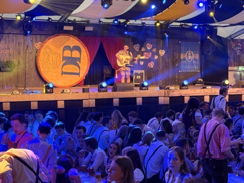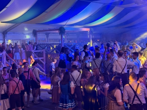 Ab 15:00 Uhr öffnen sich die Tore zum Fest, gefeiert wird bis 1:00 Uhr in der Nacht. Schon beim Betreten des Zeltes sorgte eine Blaskapelle mit Sängerinnen und Sängern für Stimmung. Deutsche Schlager und Partyhits erfüllten das Zelt – man fühlte sich fast wie auf einem bayerischen Oktoberfest! Auch der DJ Gildo spielte bekannte deutsche Hits, die von den holländischen Gästen begeistert mitgesungen wurden. Obwohl viele kaum Deutsch sprachen, kannte offenbar jeder Lieder wie Rosamunde, Schenk mir dein Herz und viele weitere Klassiker.