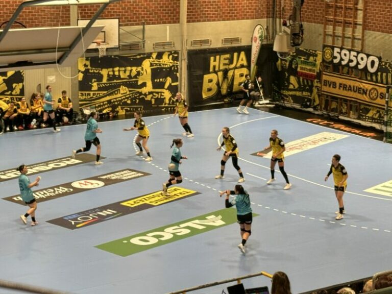 Nach zuletzt drei Heimniederlagen gegen den Thüringer HC zeigten die Dortmunderinnen diesmal von Beginn an ein anderes Gesicht. Der BVB übernahm sofort die Kontrolle über das Spiel und setzte den Gegner mit hohem Tempo und einer starken Defensive unter Druck. Bereits zur Pause führte das Team deutlich mit 23:15 – ein echtes Handball-Feuerwerk vor rund 600 begeisterten Fans in der Halle.